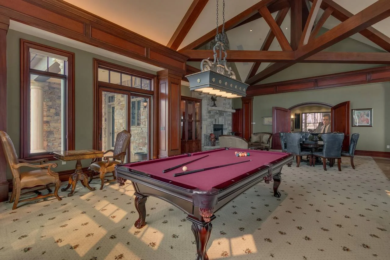 The grandest view this world affords was just discovered along the southeast shore of Lake Tahoe at our Sierra Sunset lakefront vacation rental home! With a 16,703 square foot main house, a private dock, and over 150' of shoreline, this 24-acre estate isn’t your typical vacation destination, it is your personal oasis. Tucked behind a gated entry, only 10 minutes away from South Lake Tahoe, this spectacular lakefront vacation rental home includes eight bedrooms, a theater room, exercise room, wine room, gourmet kitchen with butler’s pantry, a formal dining room, two living rooms, an expansive backyard patio, plus a game room with a spectacular bar, pool table and fireplace. Sierra Sunset Estate is an incredibly expansive property, yet comfortably serene, with the lapping waves of Lake Tahoe, the rustling Aspen trees, and the wildlife that can be spotted throughout the year.