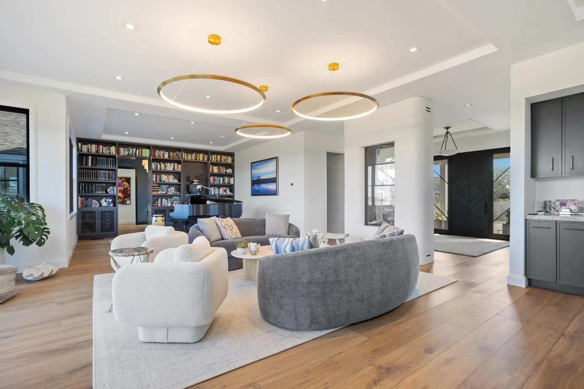 Step outside to your own private oasis, complete with a saltwater pool, oversized jacuzzi, and fire pit—perfect for enjoying panoramic sunset views. The beautifully landscaped grounds feature sustainable, low-maintenance plantings such as native fescue field grass and slow-grow fescue. Additional areas are perfect for croquet and badminton, offering endless possibilities for outdoor entertainment.