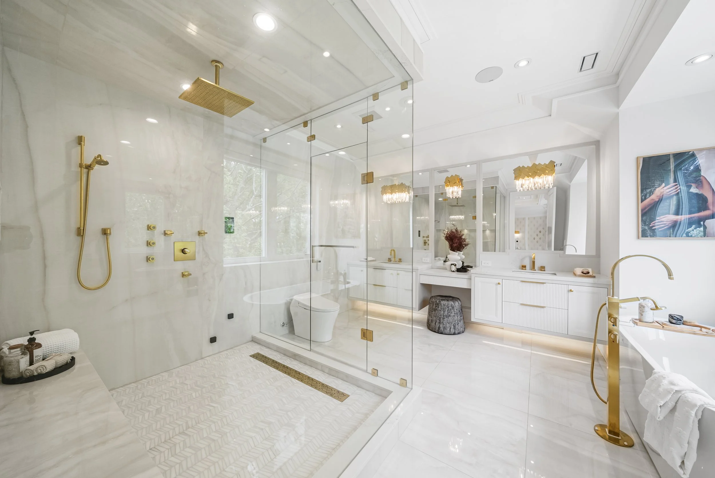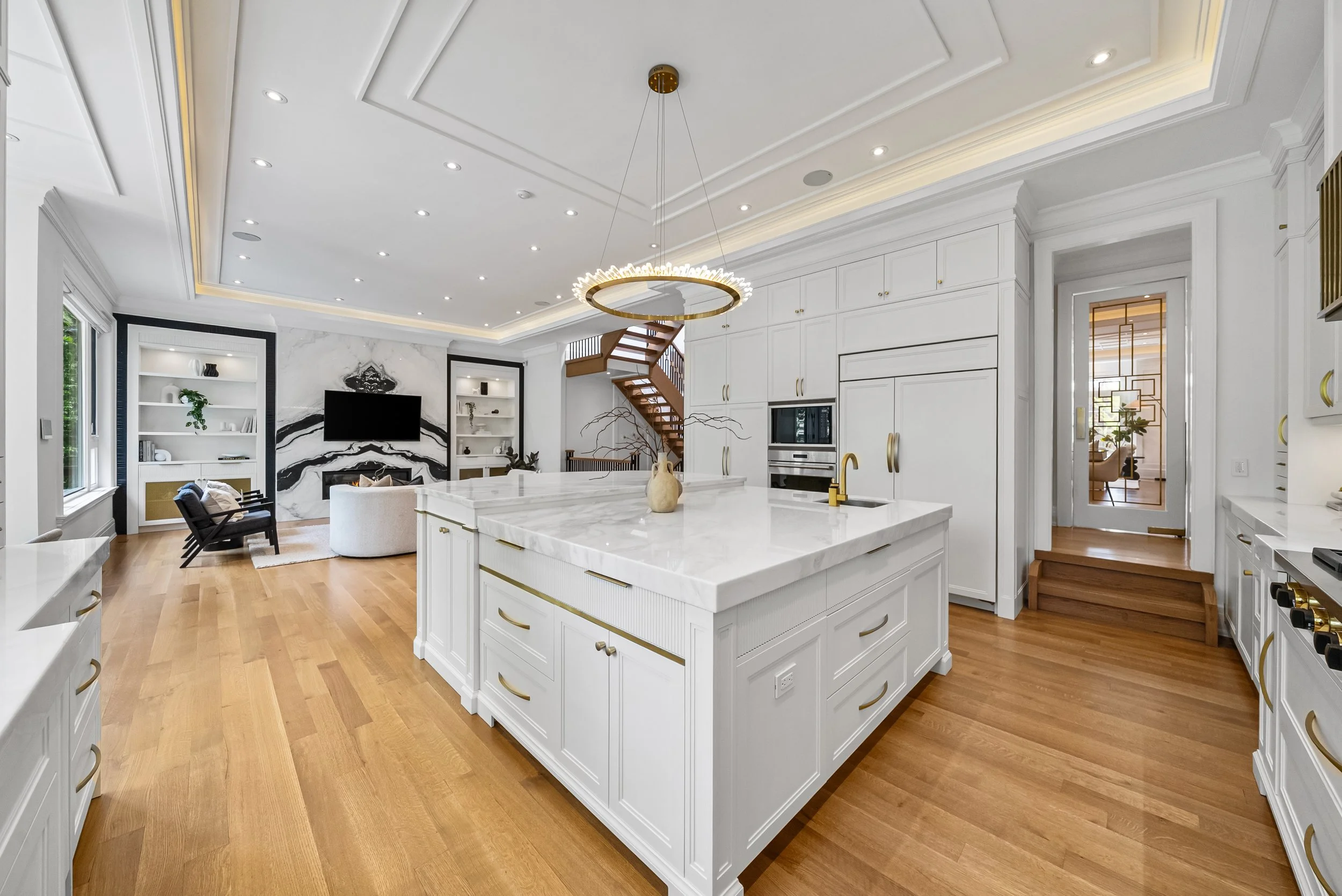 Introducing an iconic, custom-built residence by Casa Unique Homes, ideally situated on a quiet, dead-end street in the prestigious York Mills neighbourhood. This newly constructed 4+1 bedroom, 7-bathroom home spans approximately 6,300 sq. ft. of meticulously crafted living space. The stately limestone façade, handcrafted mahogany front door, and built-in garage set the tone for the refined elegance found within. Inside, soaring ceilings, wide-plank oak floors, and a private elevator to all levels create a seamless blend of luxury and convenience. A custom staircase with 14K gold accents and a marble foyer with brass inlay showcase the home's bespoke artistry. The open-concept living and dining spaces are anchored by a marble-surround gas fireplace and a showpiece glass-encased wine feature. The chef-inspired kitchen is outfitted with natural Italian marble countertops, a large island, premium Wolf and Sub-Zero appliances, and custom cabinetry by ArtHaus. At the rear, the family room centres around a striking bookmatched Panda marble fireplace and opens to a bright breakfast area with a walkout to the manicured backyard. Upstairs, four oversized bedrooms each include walk-in closets with Di Lusso systems and private ensuites. The primary suite is a private sanctuary, featuring a marble fireplace, dual walk-in closets, a spa-style six-piece ensuite with steam shower and heated floors, and a walk-out terrace. A skylight-lit hallway and second-floor laundry complete this level. The walk-out lower level includes heated floors, an oversized rec room with a gas fireplace, the fifth bedroom with an ensuite, a second laundry, a full wet bar with leathered stone counters and an island, a dog wash station, and a private wellness zone with a sauna, jetted tub, and tranquilly garden. The landscaped backyard includes a fire pit lounge area and is pool-ready, with city-approved permits and installation underway.