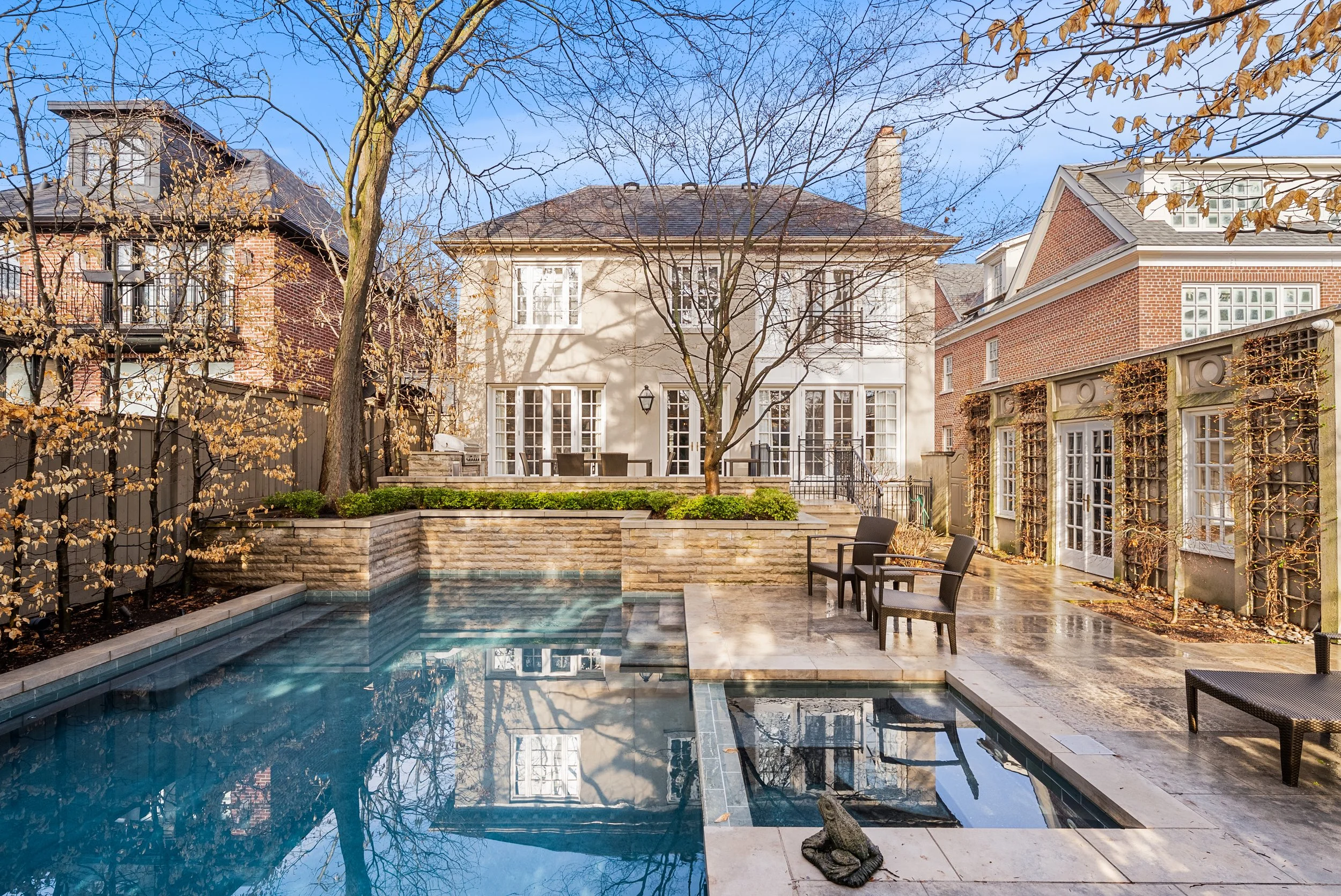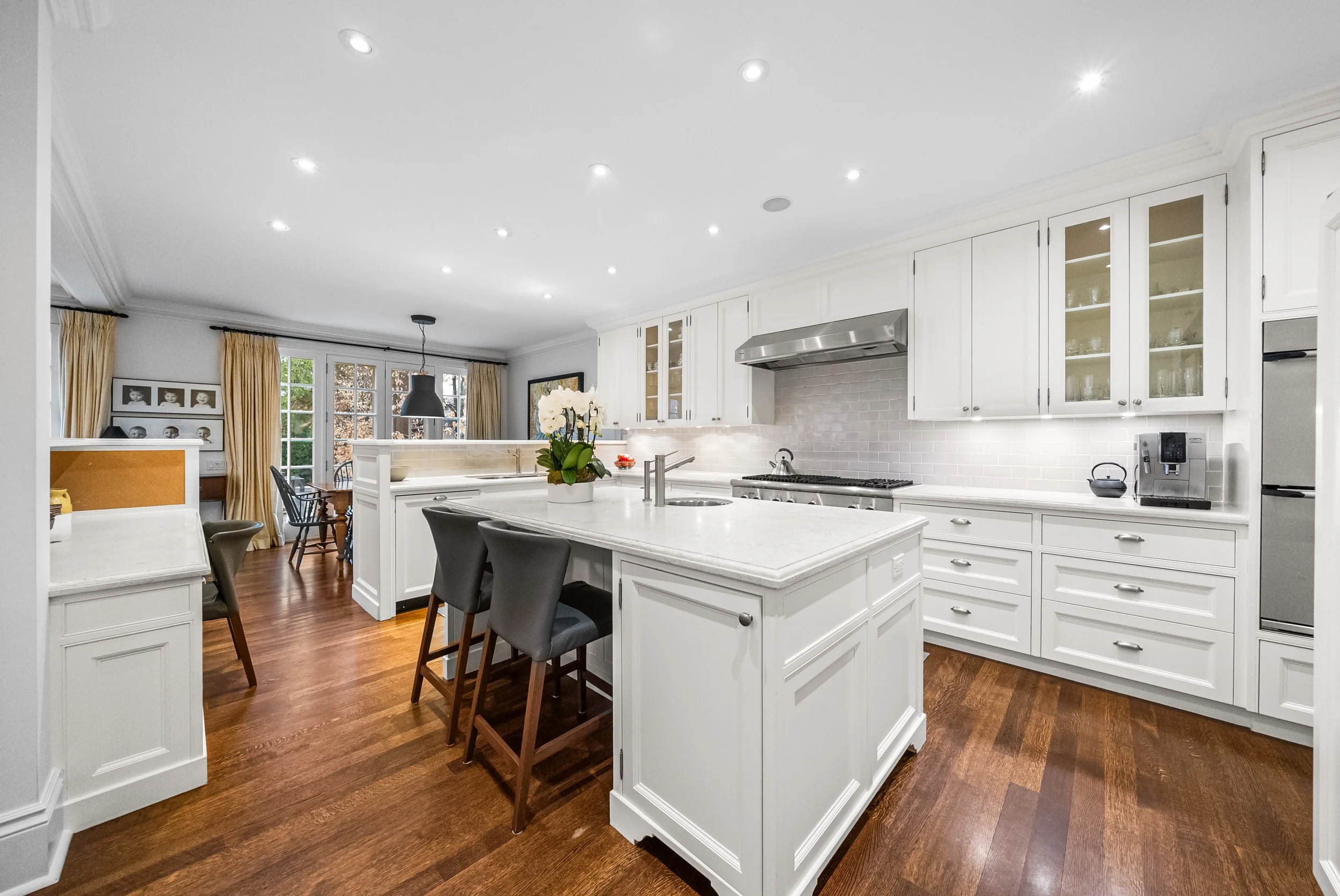 Elegantly situated on one of Moore Park's most sought-after streets, this majestic home offers over 6,400 square feet of luxurious living space. Sitting on a rare 50x131 ft. west-facing lot, this seven-bedroom home offers three stories of endless elegance and elevated living. The centre-hall plan opens to hardwood and wainscotting throughout and an exquisitely-appointed living room with wood fireplace facing an elegant dining room, both adorned with meticulously-designed crown moulding. The combined kitchen and breakfast room are flanked with marble counter tops, SubZero fridge, Thermador range, Dacor double oven, Miele dishwasher, a walk-in pantry and a butler's pantry with wine fridge, along with a private desk area. The spacious family room's row of French doors overlook an impeccably landscaped yard with an expansive fieldstone patio, built-in BBQ and an inground pool with a private poolside gazebo, all nestled among the beautiful treed canopies of this coveted neighbourhood. The second floor offers private steps to a serene and lush master bedroom escape, with a 4pc bath, walk-in dressing room, a gas fireplace and French doors with a Juliette balcony overlooking the yard. Three additional generous-sized bedrooms round out the second floor, one with an ensuite, along with a beautifully-appointed office enveloped in mahogany built-in shelving. A third floor retreat offers two more bedrooms, another 4pc bath and additional storage - perfect for guests or a nanny suite. The lower level boasts an oversized sunken recreation room with entertaining and creative spaces, a private gym, laundry and storage. Accompanied by a private driveway and garage this distinguished home is a rare find in a highly-desirable pocket of the city. Within the Whitney Public School and OLPH school districts, with access to parks and extensive ravines/walking trails nearby, 28 Hudson offers an elegant and peaceful oasis, within walking distance of charming shops and restaurants.